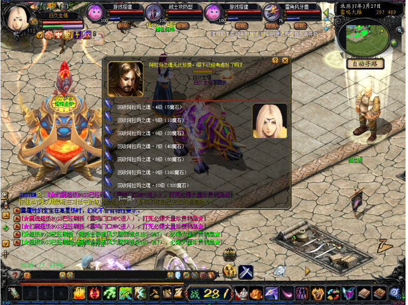 独家双打年系统,全新玩法,不再只是打怪升级刷BOSS,熔炼圣炉,18级阿拉玛之魂高价回收,想要发家致富,想要升级比人更快一步,打年才是出路。。。。。。。。。。!