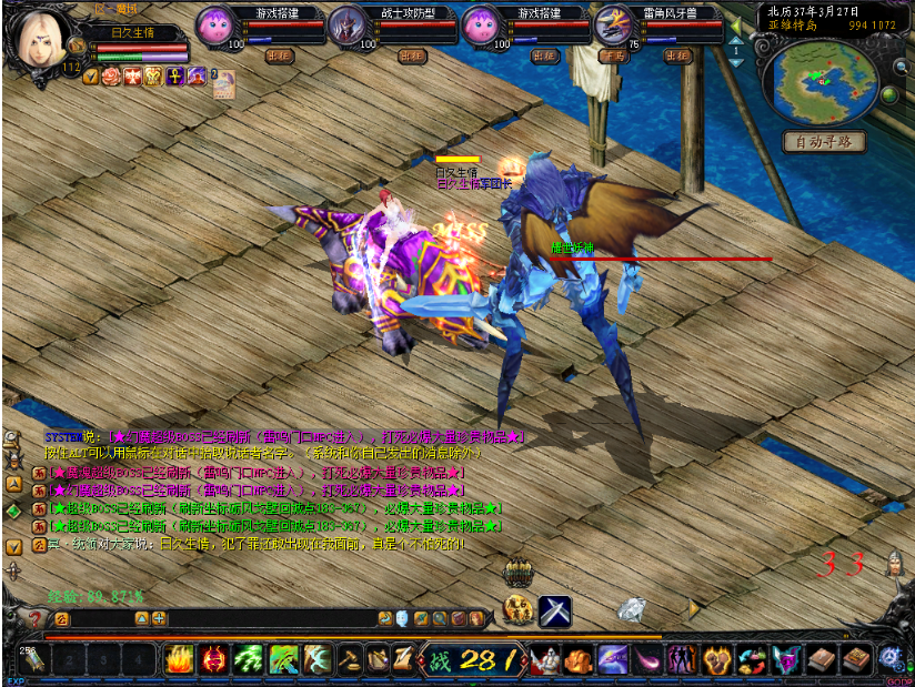 【BOSS介绍】:雷鸣每晚刷新三只超级BOSS,从杂货商处NPC进入,可爆大量珍稀物资,海岛桥头每晚八点刷新世界BOSS耀世妖神,大佬升战必打 )