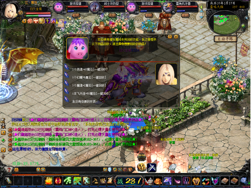 【回收兑换介绍】: 增加回收系统:各类宝石,物品捆绑,属性装备,幻魂兑换,版本完美,玩法丰富,2024最值得玩的服? 独家打年,给普通玩家一个很好的赚MS的机会