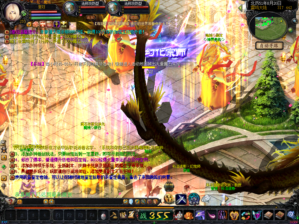 1.服务器每天上午12点00维护20-30分钟,请各位玩家注意提前做好下线准备。20分钟后关闭游戏重新打开登陆器进游戏即可!