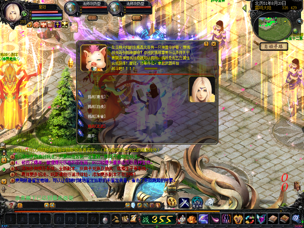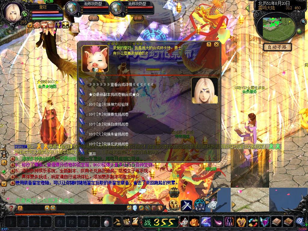 15、加入五行元素合成!全服狂暴五行元素!通过合成师合成四大神兽挑战卷和五星副本挑战卷必要品 传送NPC雷鸣口!