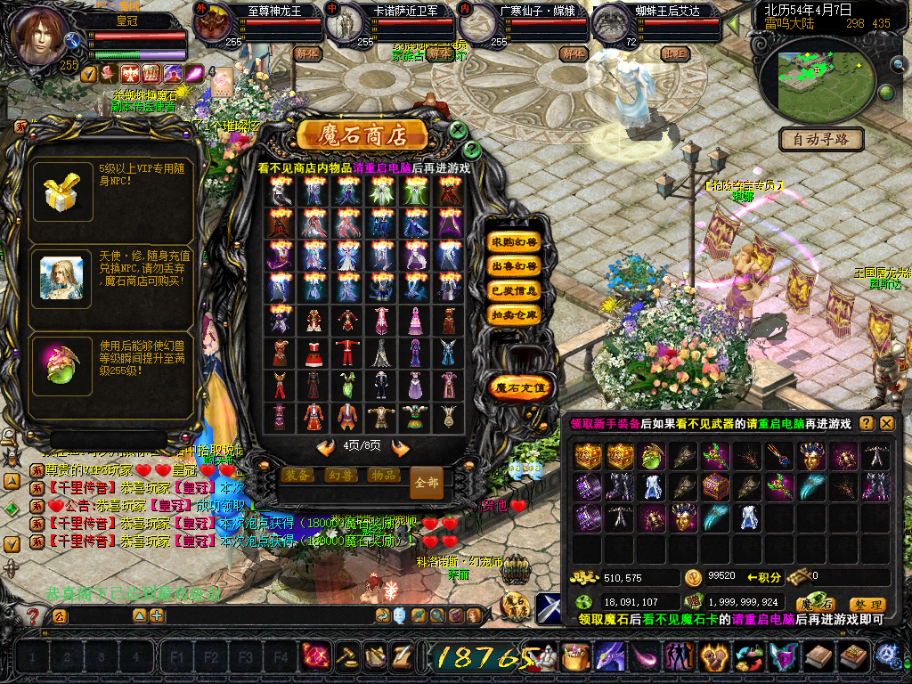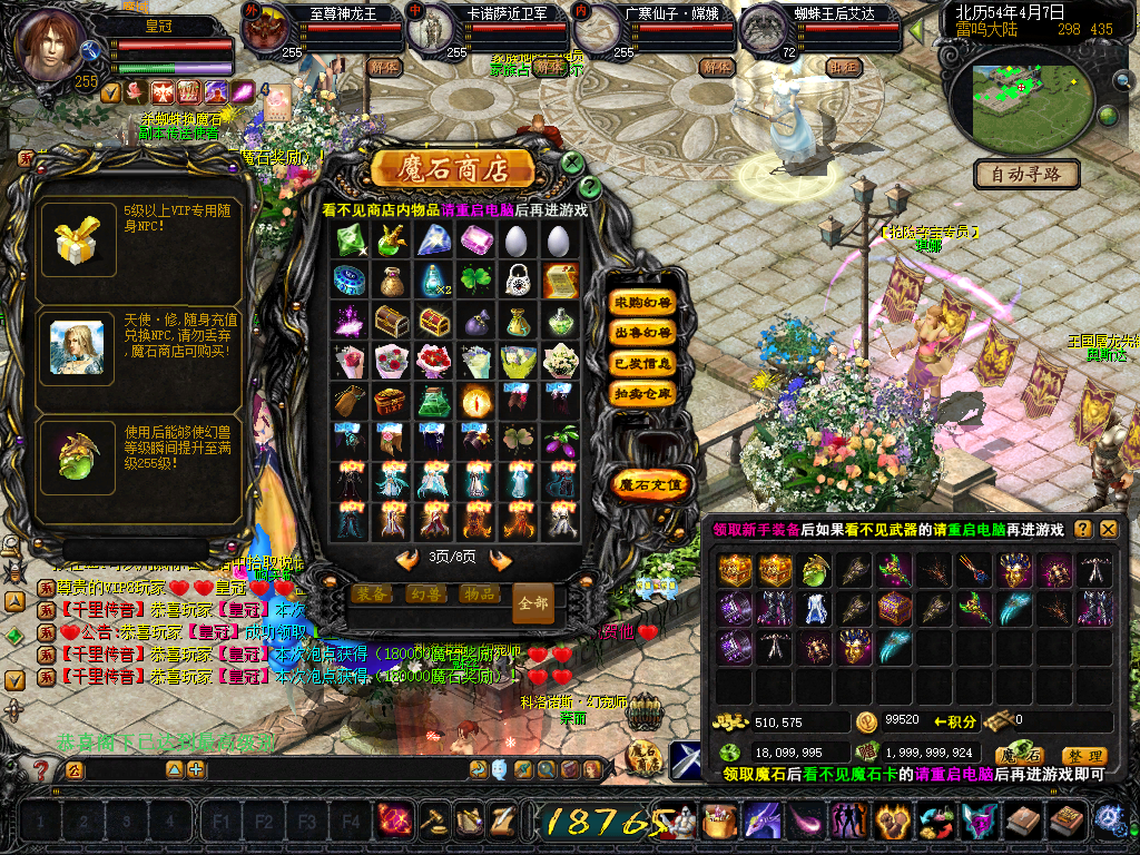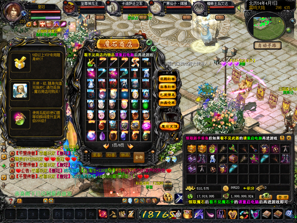 友情提醒:看不见魔石商店以及宝宝装备,充值后领取魔石看不到魔石卡的请重启电脑再进游戏!