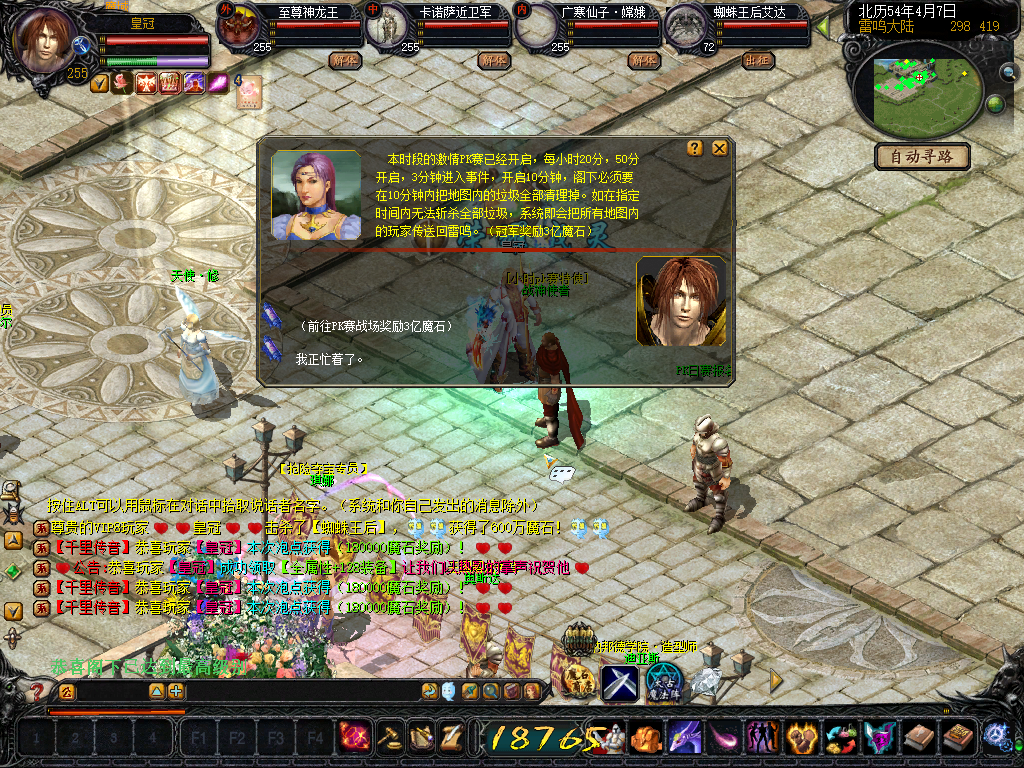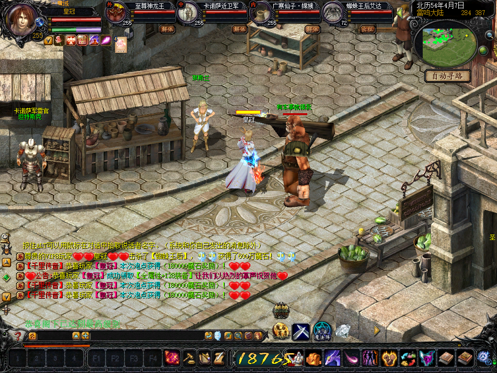 新增击杀蜘蛛王后累计60只可在雷鸣市场处NPC兑换魔石最高可兑换1亿魔石!