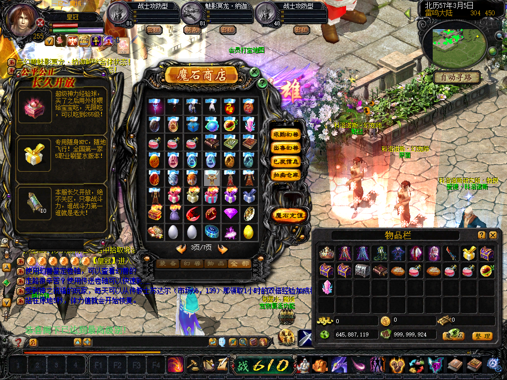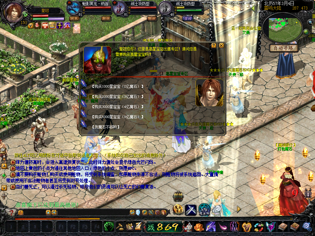 【注意事项】 如果遇到进入游戏有如果看不到宝宝 魔石商店 装备等物品,直接重启电脑即可