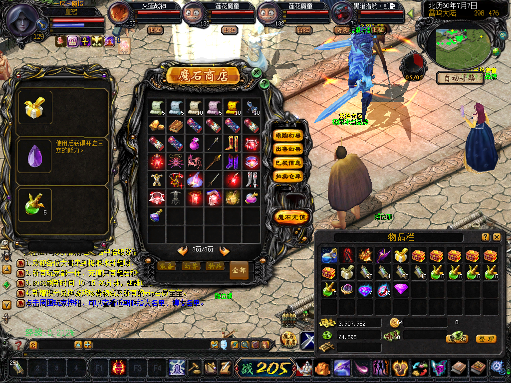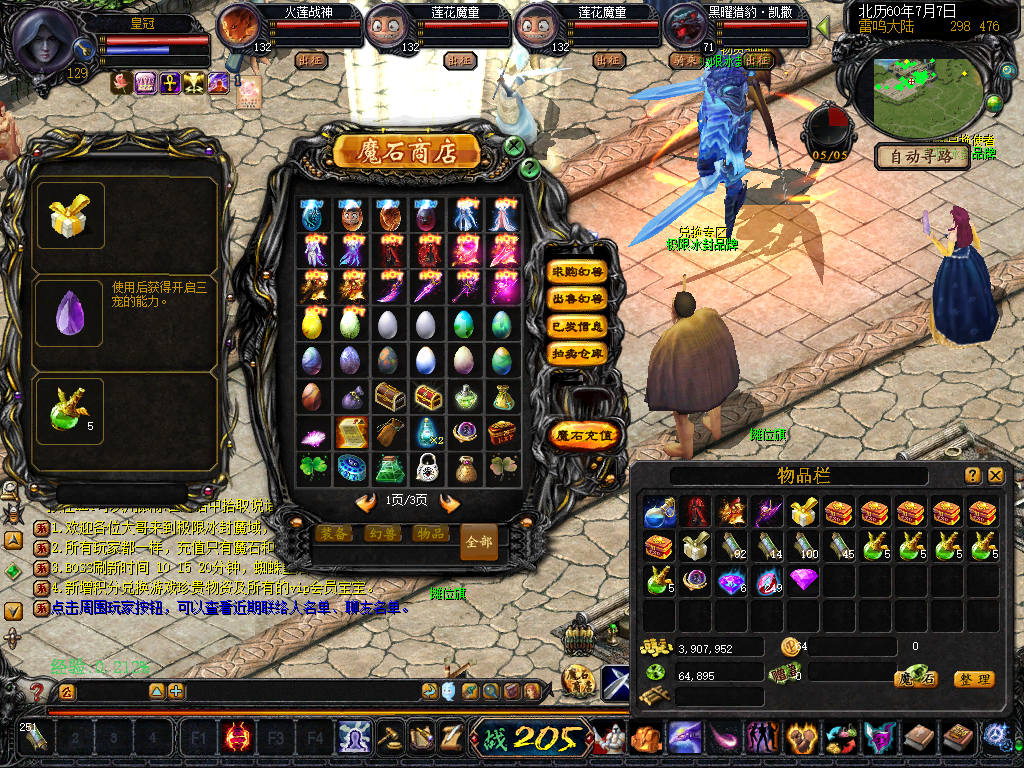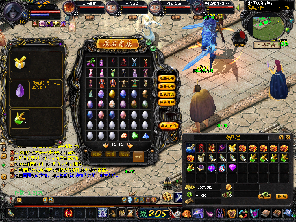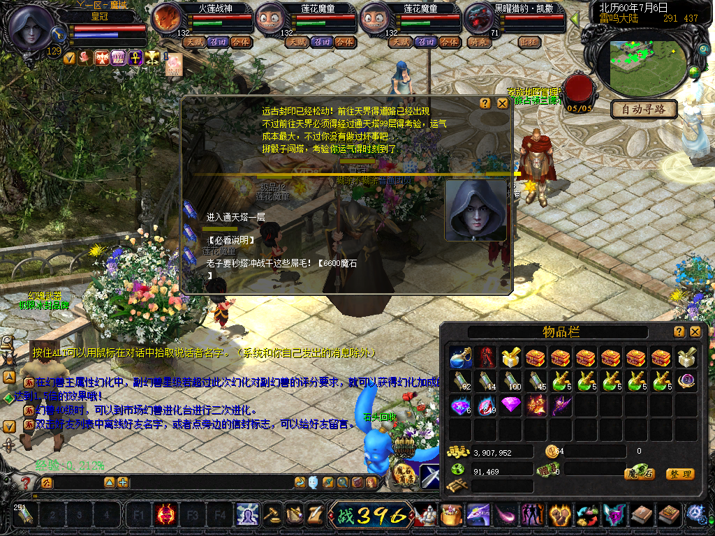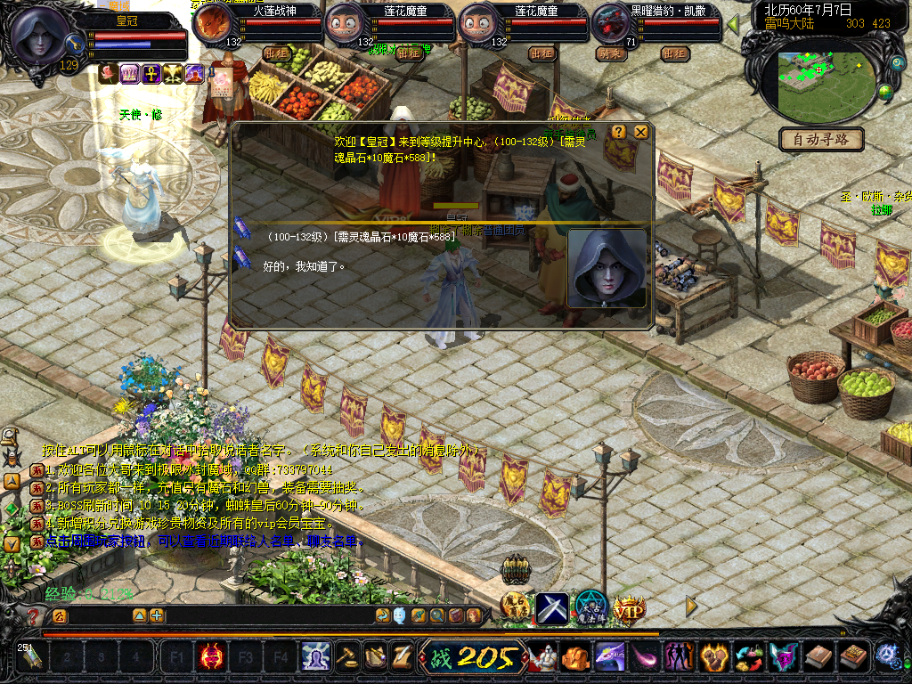 【 等级】 人物最高等级132级,宝宝最高等级132,副宠最高12星。玩家可通过雷鸣门口等级npc提升等级到132级。
