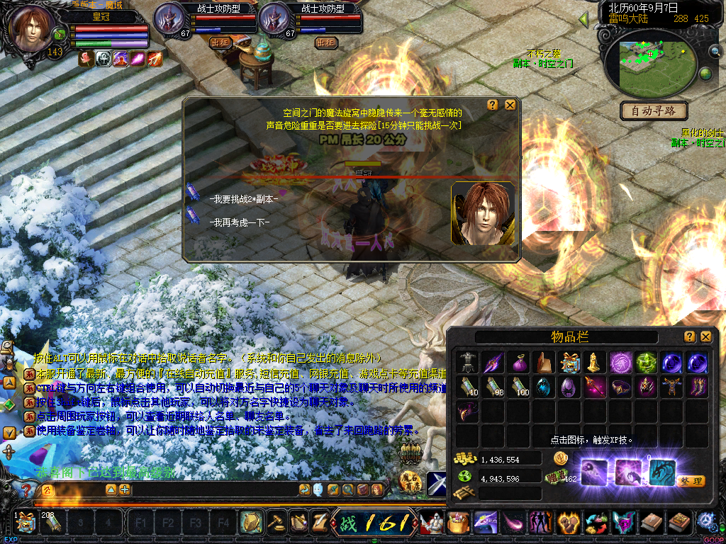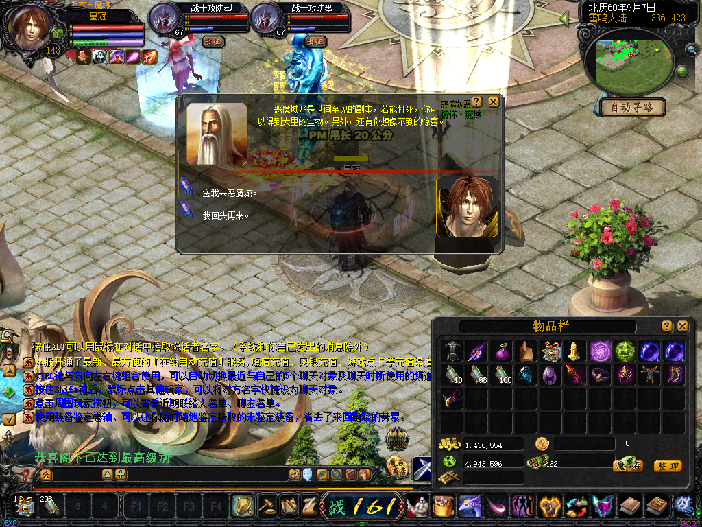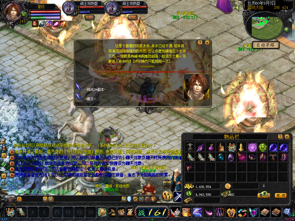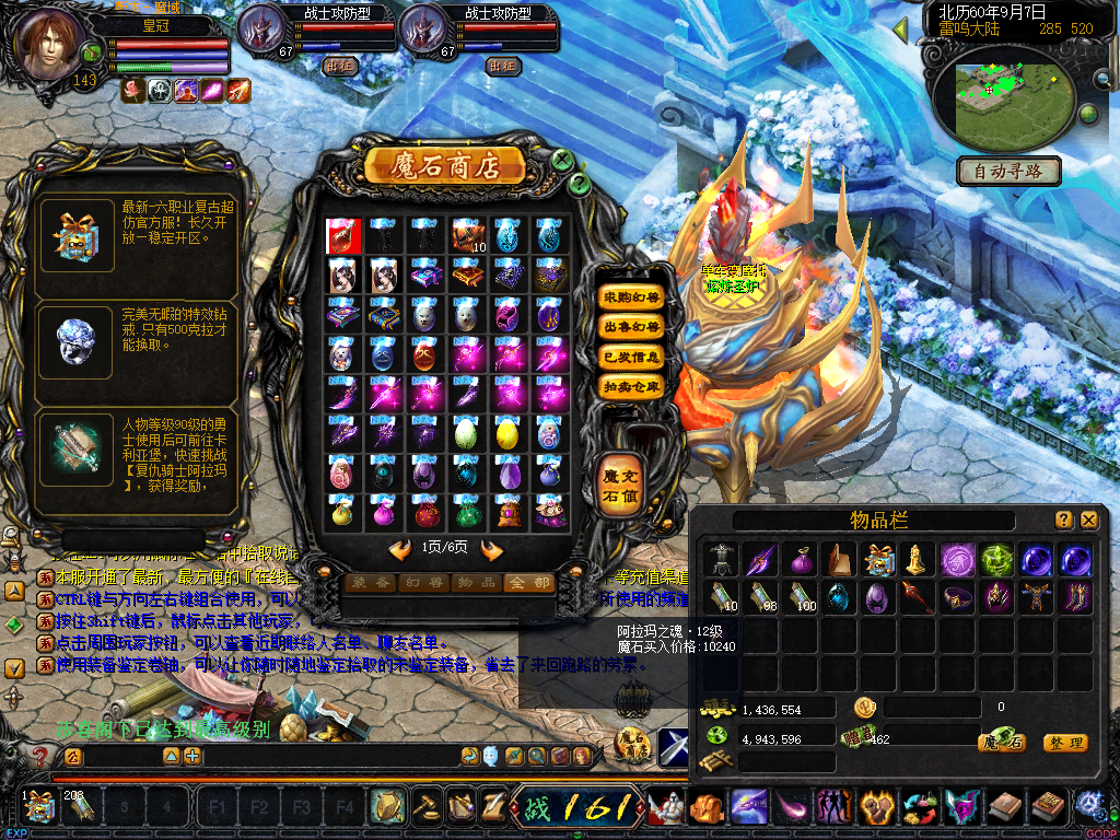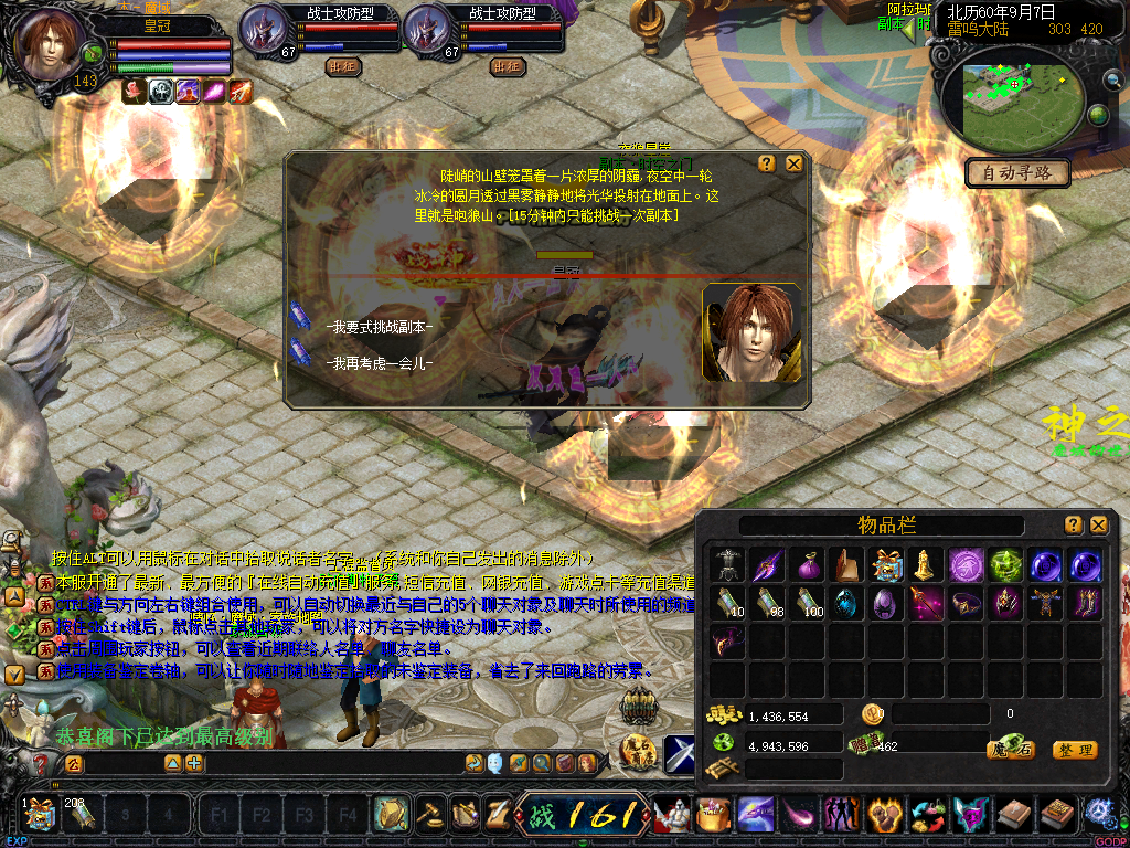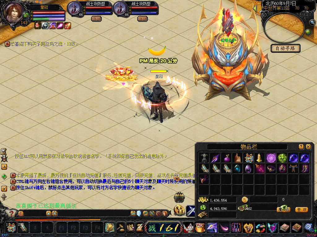 ☆周一BOSS “萨格罗斯”每周一20:00出现在自然女神之怒(510,528)附近.