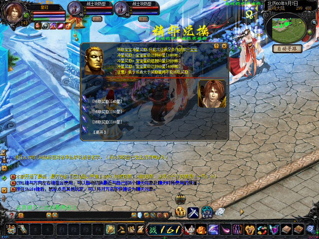 团战前宝宝到达108星: 第一名788 第二名588 第三名388