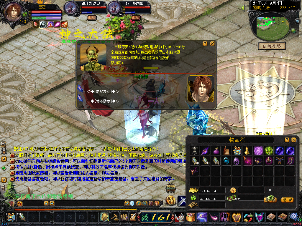每月一号PK赛:21:00分开启100级以上可进入