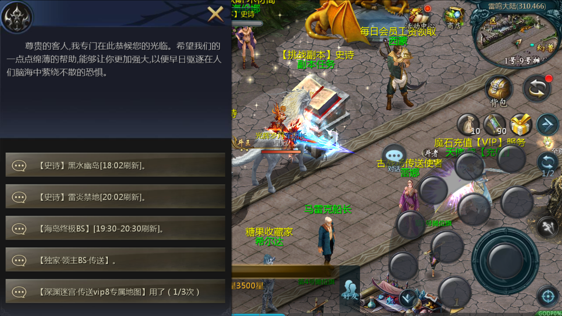 2.海岛终极19:30和20:30。3.雷炎禁地20:02等boss爆大量灵魂王,药水,石头等。