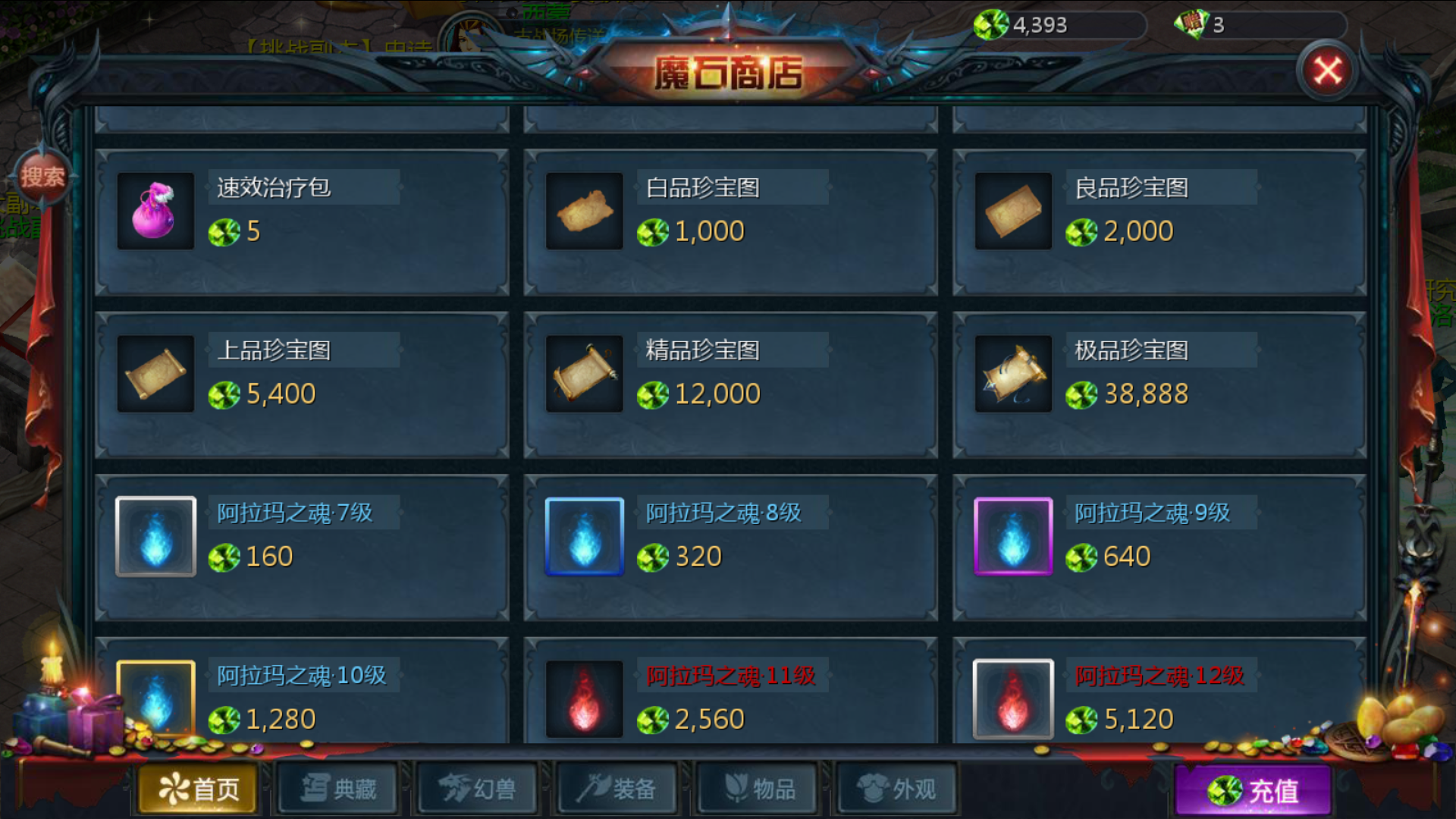 7.阿拉玛可以通过魔石商店买13级的去人物器灵那边合,也可以找会员工资领取处抽奖或者爬炉子。多余的阿拉玛可以在炉子处回收。